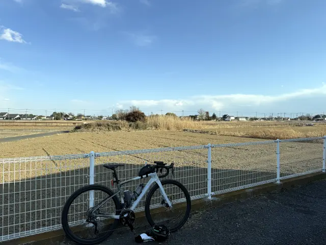 昼間はそこそこ気温が上がったものの予報よりも風が強く、横風のときは煽られたが最後の50kmくらいは追い風に乗れた。